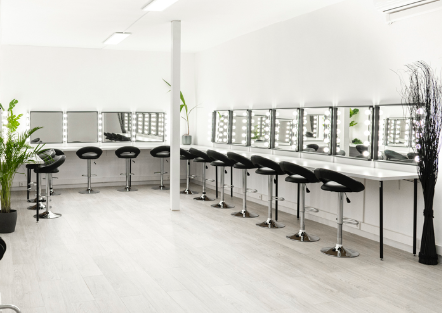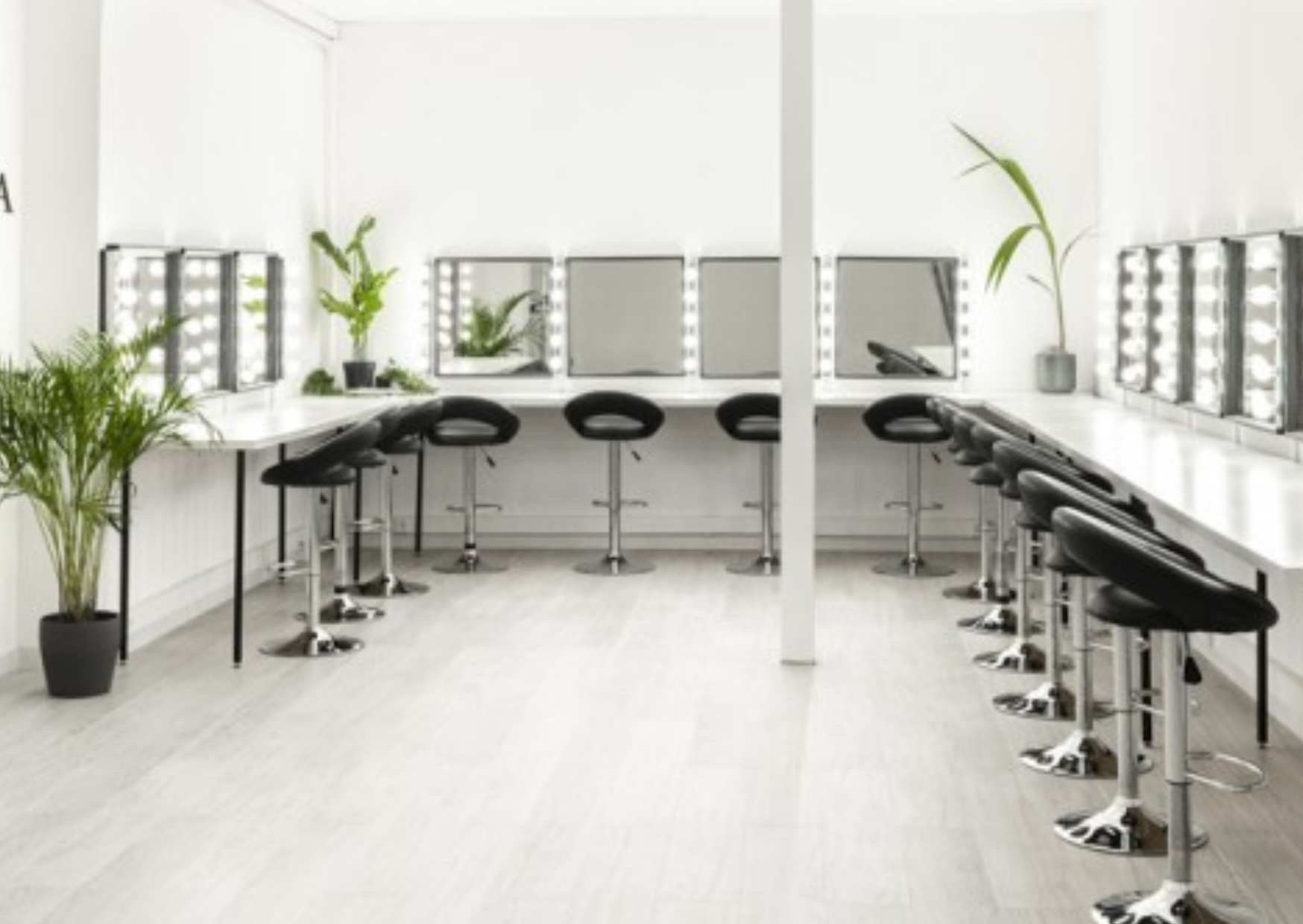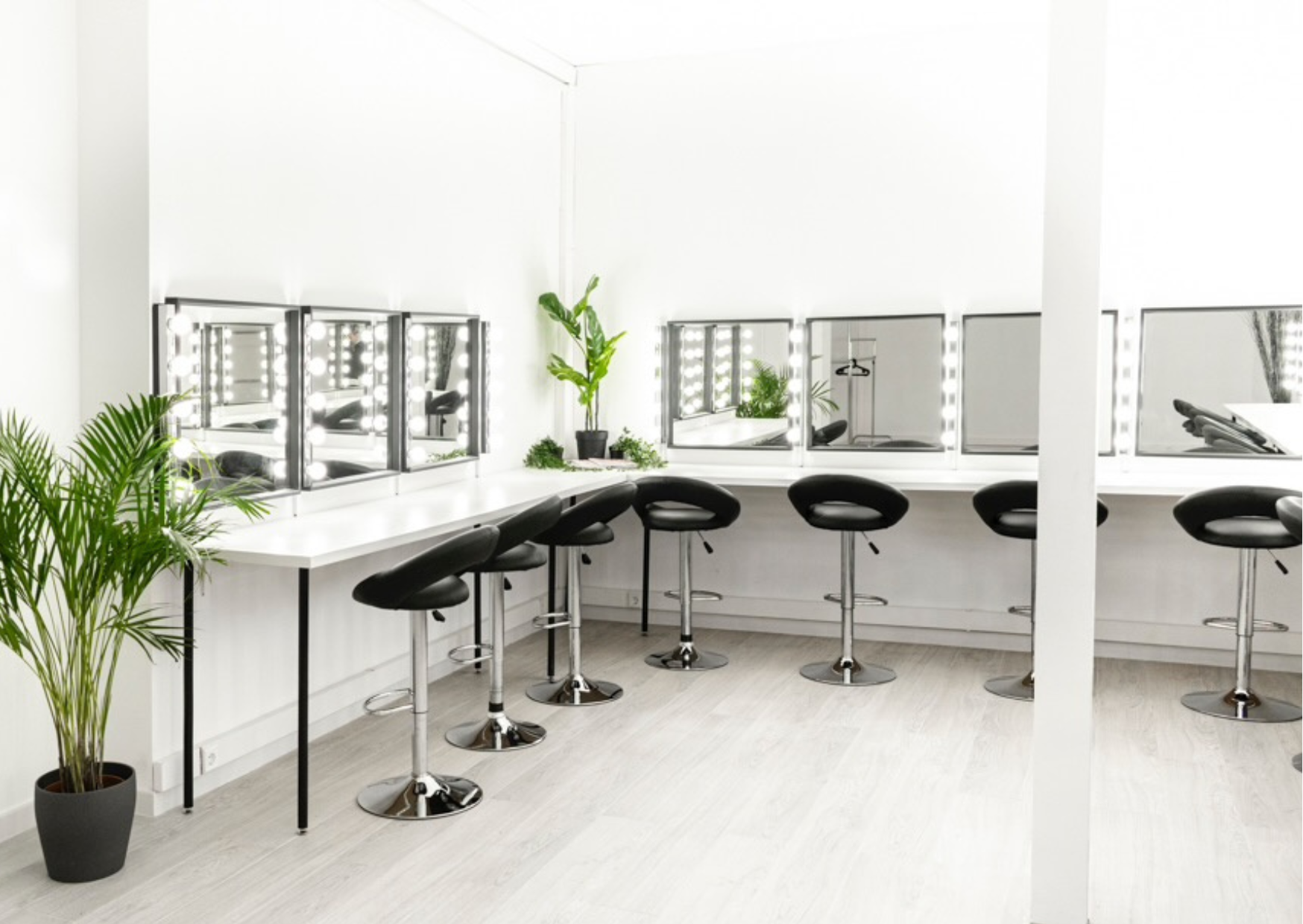 Salón completamente acondicionado con tocadores de Maquillaje para cada participante, con luz neutra de alta calidad y espejos individuales grandes que te permitirán ver cada detalle de tu trabajo con claridad.